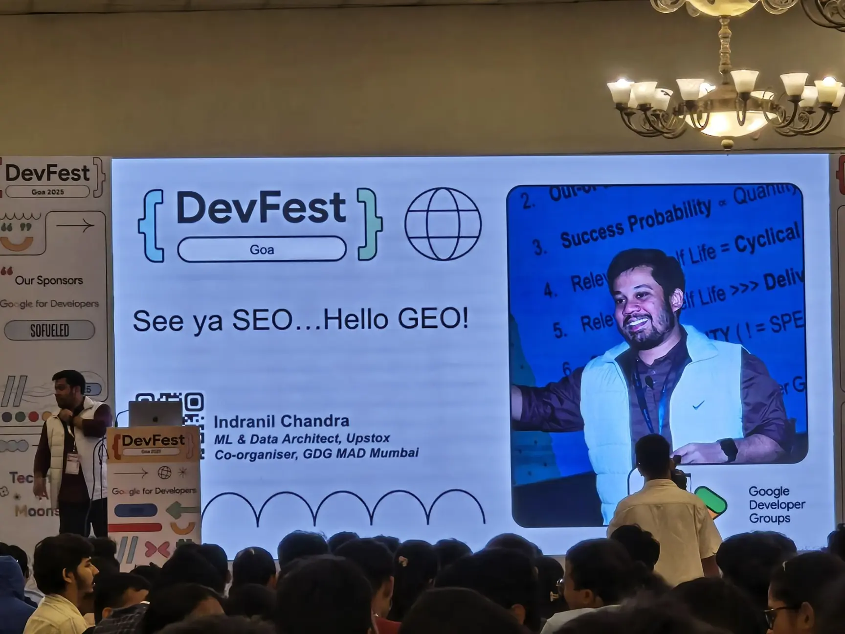 Indranil from Upstox captivated the audience with his talk, "See Ya SEO....Start with GEO," shedding light on the paradigm shift from traditional Search Engine Optimization (SEO) to a more sophisticated blend of AI Engine Optimization (AEO) and Geographic Engine Optimization (GEO).